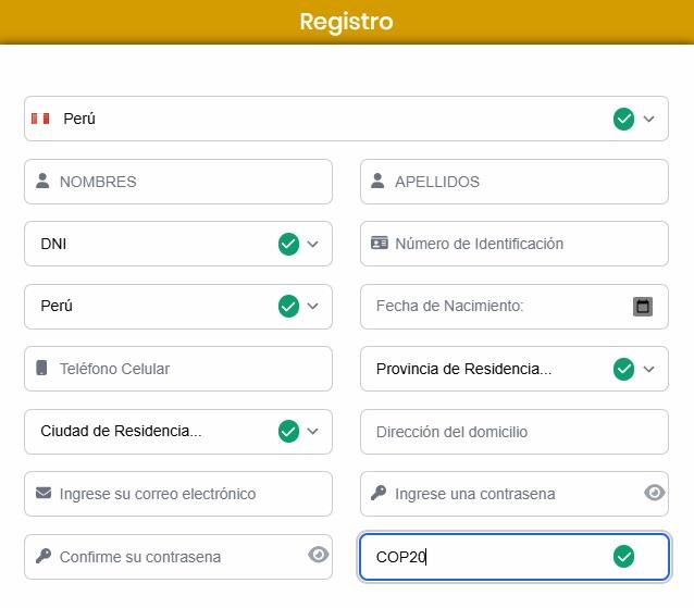 - La aApuesta Gratis de S/50 debe ser elegida durante el proceso de registro